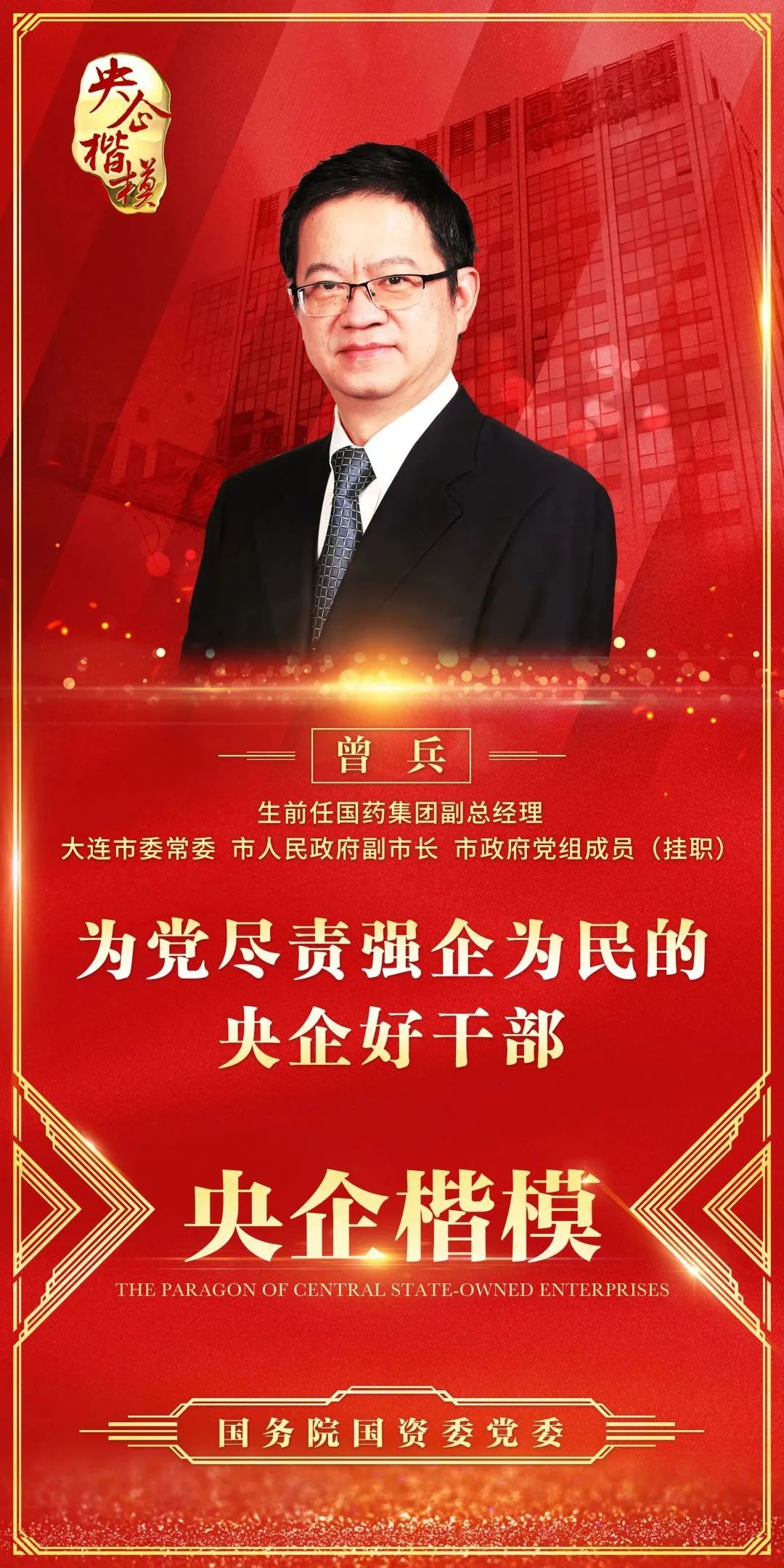 2022年7月23日,曾兵在大连工作调研期间,突发疾病逝世,享年52岁。2020年2月,他逆行进驻湖北武汉,参加中央指导组物资保障组工作,在抗疫一线连续奋战51个日夜;2020年9月,他带队赴秘鲁开展国药新冠疫苗海外Ⅲ期临床试验,历时8个月,克服各种难以想象的困难,确保临床试验有序开展和顺利完成。他扎实推进国药集团改革三年行动,推动国药疫苗在海外获批准入和抗疫物资国际援助。2022年,他挂职大连,短短一个月内,开展调研22次,帮助工业企业解决实际困难,做好“迎峰度夏”保供电工作,积极协调推动大连国资国企改革重组。