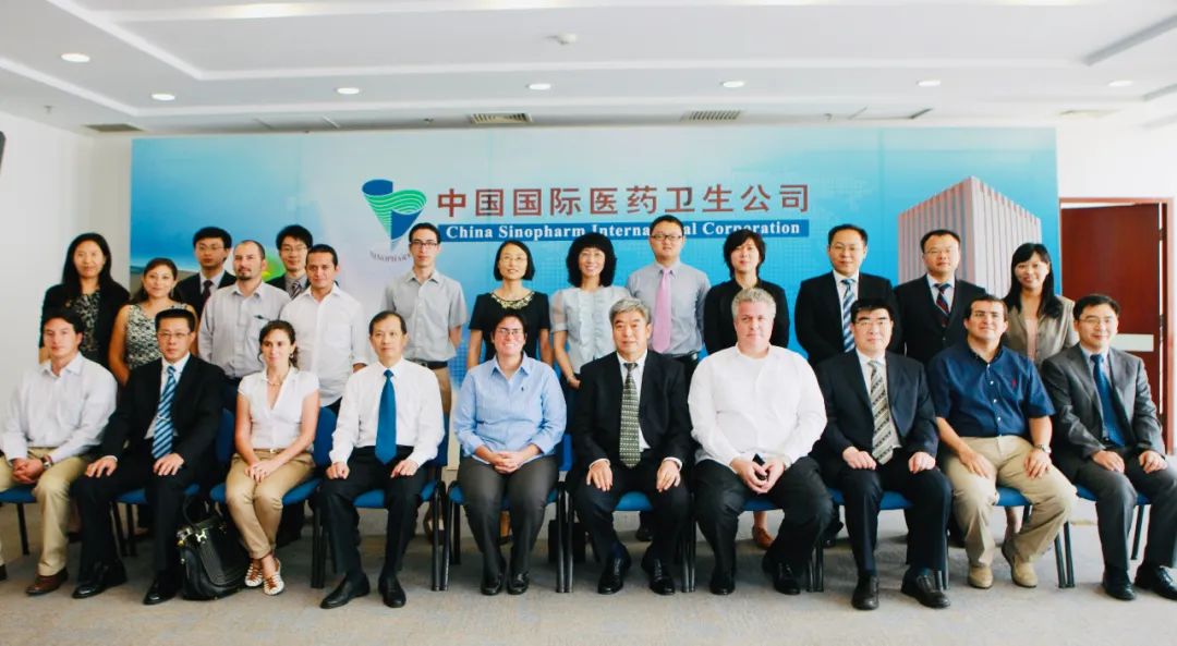 2012年8月,厄瓜多尔时任卫生部长卡丽娜•班赛•马夫拉(左五)一行到访国药国际