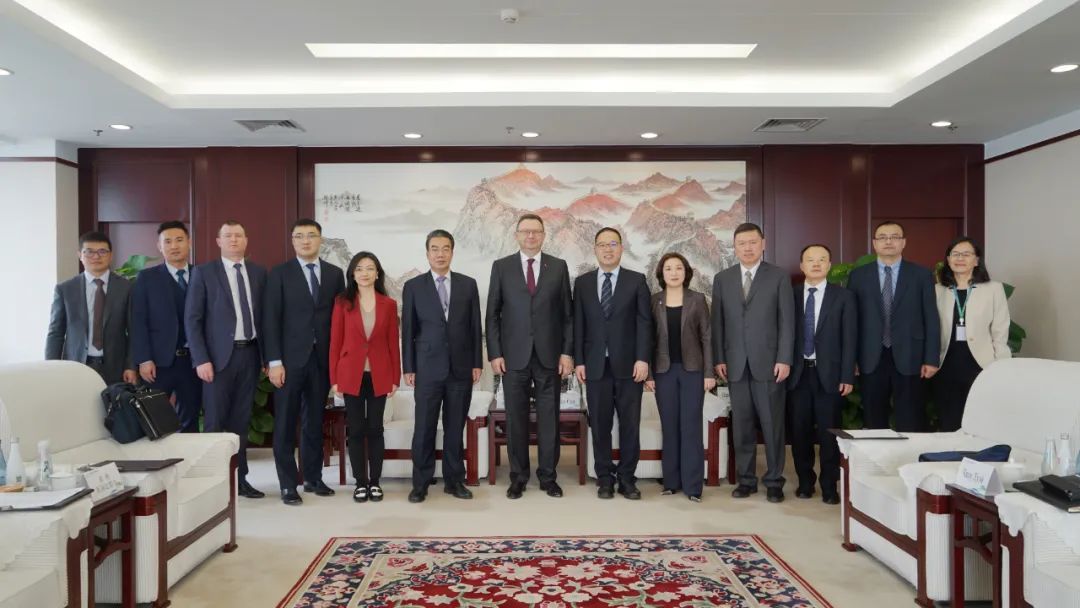 2023年,国药国际党委书记、总经理周颂与到访国药嘉运的外国卫生官员进行业务洽谈后合影