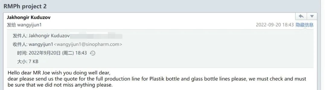 让项目团队感到欣慰的是,River med总经理Jakhongir Kuduzov对生产线各项技术指标完成度“深感振奋”,同时对国药提供的高效、便捷远程调试服务表示高度认可和衷心感谢!