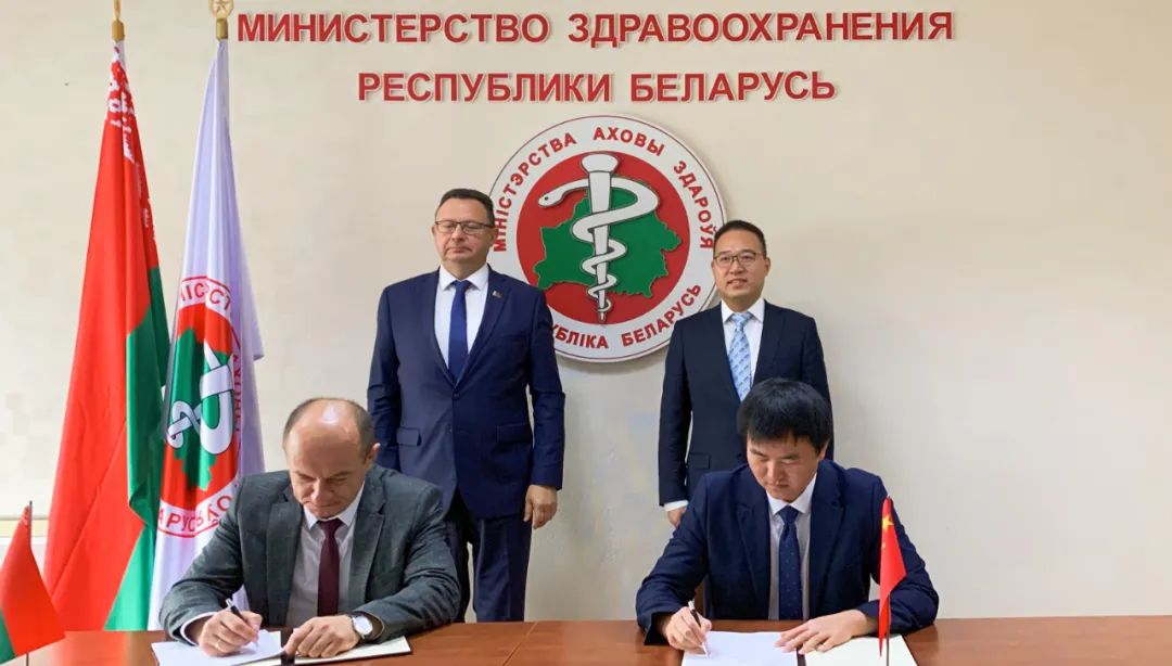 在皮涅维奇、周颂见证下,国药国际与白第一大国营制药企业BELMED现场签署两项服务贸易和本地化生产协议。
