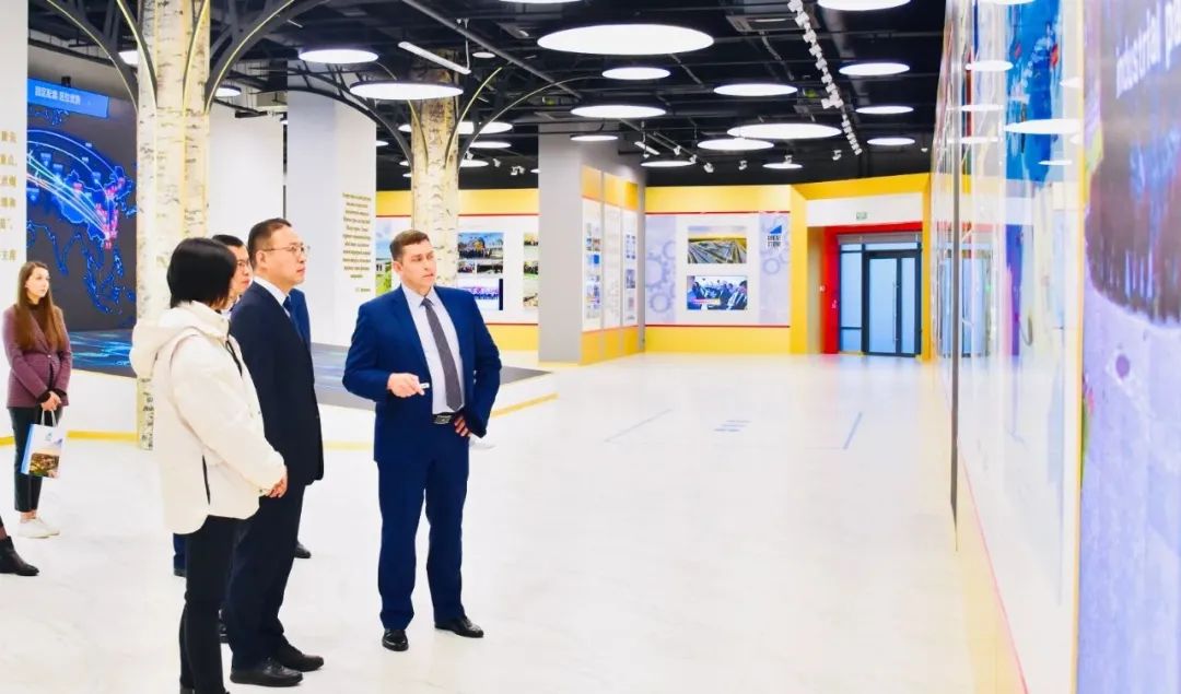 在中白工业园管委会第一副主任亚季莫夫、园区开发公司第一副总经理基里尔等陪同下,周颂一行参观了园区规划馆、科创中心、一站式服务大厅等。双方重点围绕药品本地化生产、中医药服务等方面进行探讨交流,表达了合作开发标杆项目和产品的愿望。