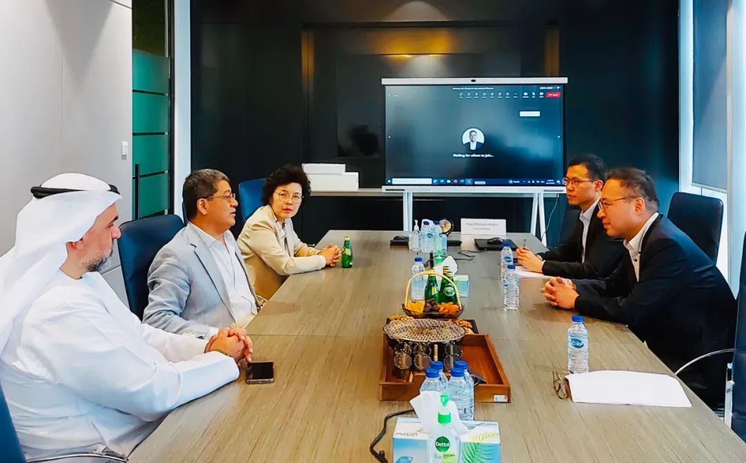 当天,周颂一行马不停蹄前往150公里外的阿联酋首都阿布扎比。哈雅生物科技有限公司是中國生物技術股份有限公司、国药国际香港有限公司与G42 合资设立的本地化企业。在与哈雅生物CEO丛宏彬及相关业务负责人座谈时,大家就强化业务协同、开发国际市场等进行了交流沟通。