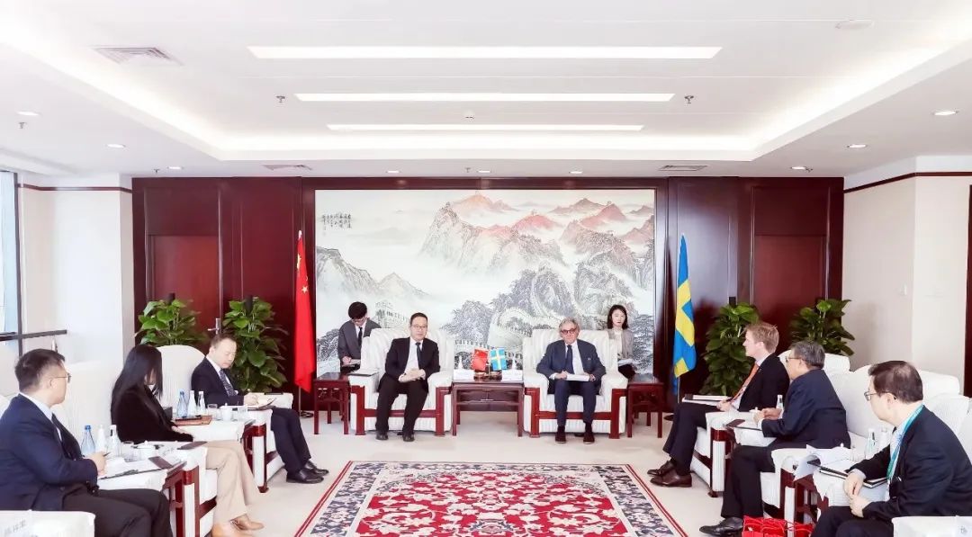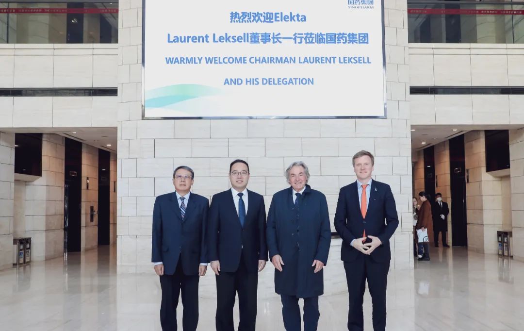 11月8日,医科达创始人、全球董事会主席Laurent Leksell,全球总裁兼首席执行官Gustaf Salford,全球执行副总裁兼中国区总裁龚安明一行到访国药国际。国药国际党委书记、董事长周颂会见并座谈,双方就进一步深化战略合作、造福全球肿瘤患者进行深入沟通交流。