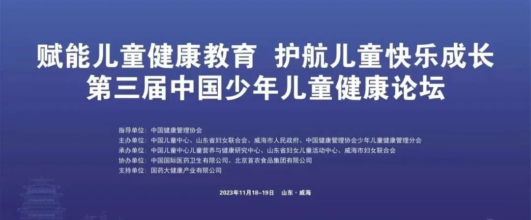 11月18日-19日,第三届中国少年儿童健康论坛在山东威海举办,论坛以“赋能儿童健康教育 护航儿童快乐成长”为主题,围绕医教整合、体教融合、食育结合等领域进行探讨研究。论坛由中国儿童中心等主办,中国国际医药卫生有限公司协办,副总经理张丽琼出席并致辞。