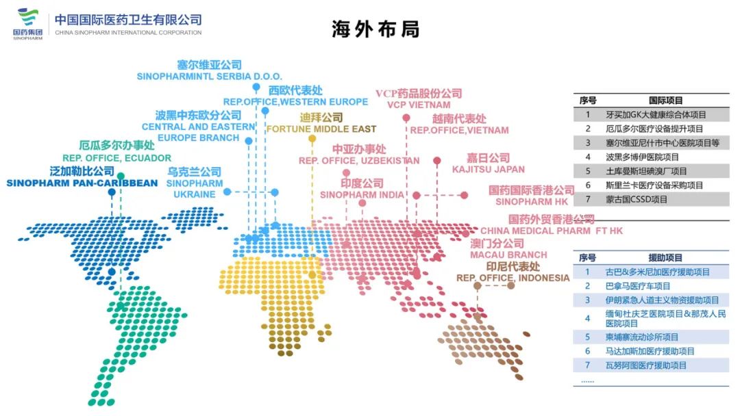 国药国际积极践行“一带一路”倡议和双循环战略,国际化经营辐射195个国家和地区,海外网点遍布五大洲,与100余家全球知名医药、医疗器械和健康产品供应商有着密切合作关系。