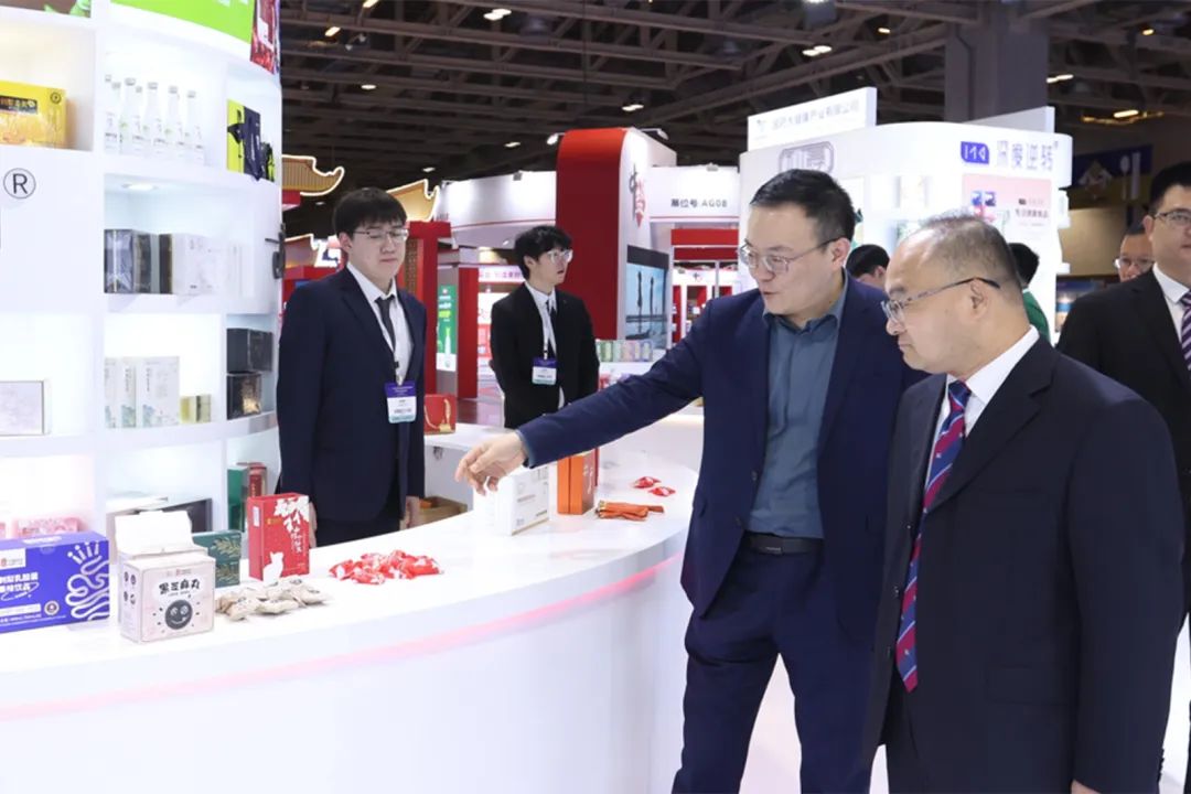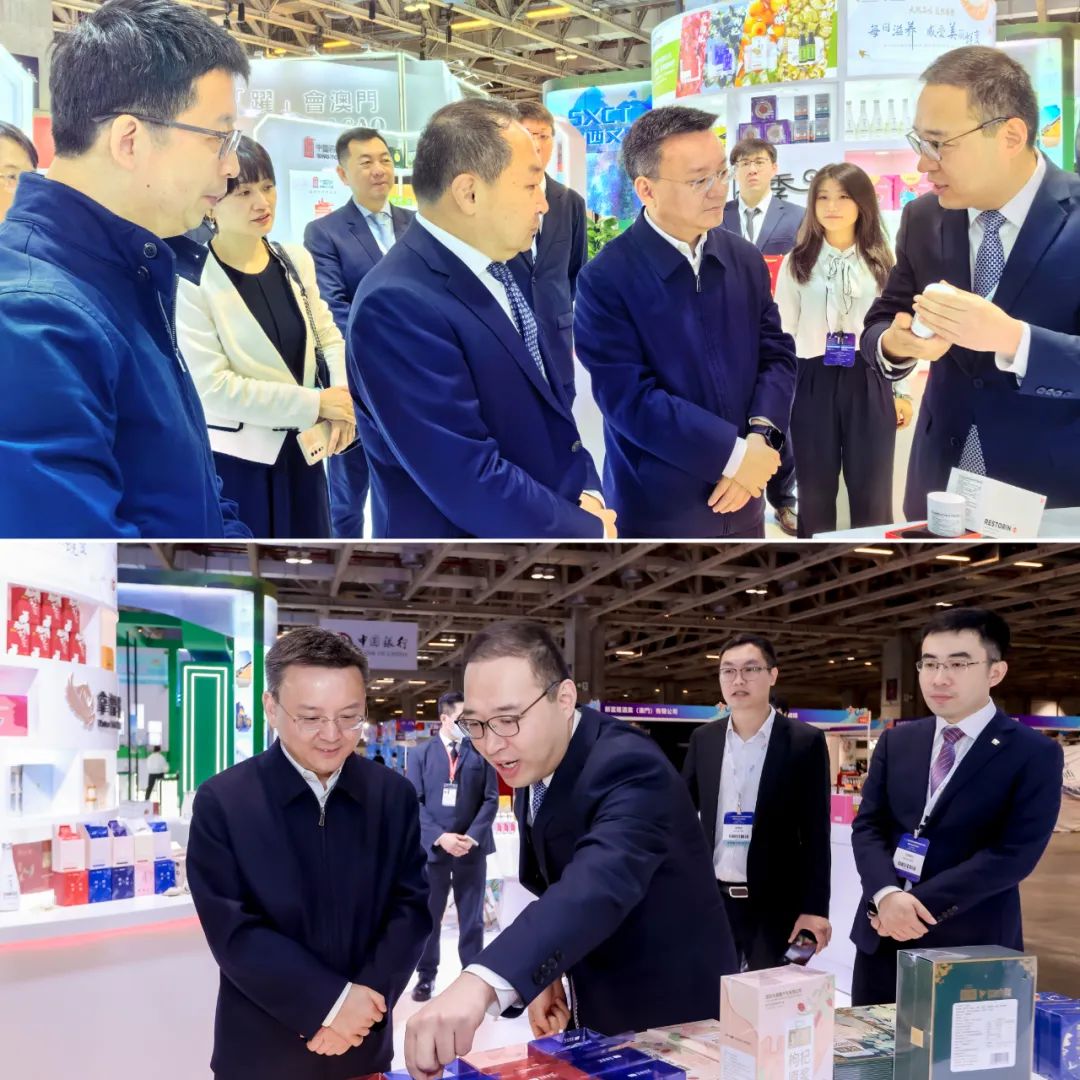 展会现场,国务院国资委党委委员、副主任苟坪,中国旅游集团总经理王海民,南光集团董事长傅建国、总经理姜维亮,国务院国资委国际合作局局长朱凯、副局长谢晖,社会责任局副局长汪洋、改革办副主任周巧凌,澳门特区政府旅游局局长文绮华,澳门中联办宣传文化部部长万速成、经济部部长刘德成等,莅临国药展台观展交流,详细了解国药集团生命健康产业创新发展成果。
