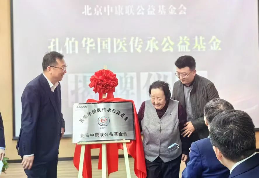 国医大师柴嵩岩,北京市中医药管理局局长屠志涛,国际儒学联合会副会长牛喜平,中国中医药报社社长陆静,朝阳区发改委副主任麻国栋,国药国际副总经理、国药康养董事长陈实,国药国际工会主席杨永戈,北京燕京名医后人工作委员会主任委员王国玮,中国医学科学院阜外医院心外科主任欧阳晨曦,北京伯华国医传承发展中心理事长孔令谦,首都名老中医和北京大学、清华大学等高校专家学者等近百人参加。国医大师柴嵩岩(左二)等为孔伯华国医传承公益基金揭牌
