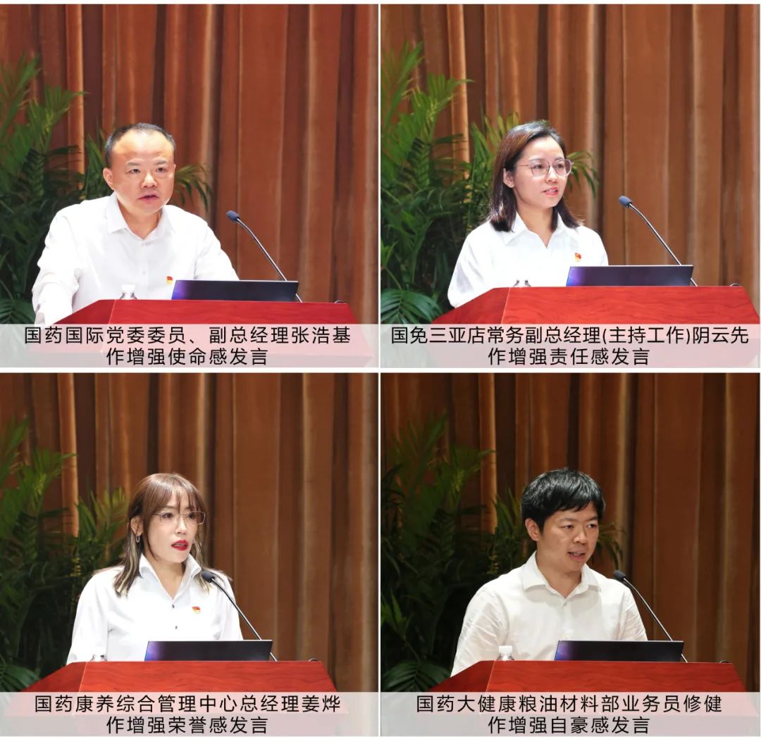 会议最后,国药国际党委郑重发出在全级次企业和全体干部员工中开展增强使命感、责任感、荣誉感、自豪感(“四感”)活动号召,4位干部员工代表作交流发言,纷纷表示以“四感”主题活动为重要载体,争做推动企业高质量发展的担当者、实干者、开拓者、奋进者。