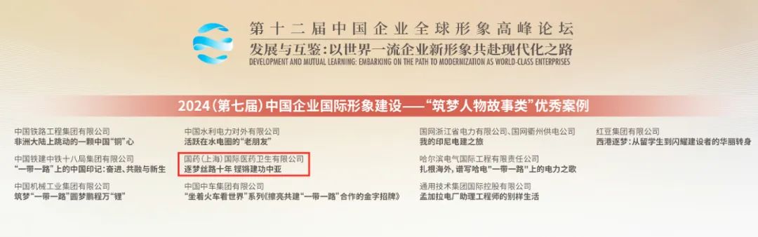 12月12日,在中央宣传部、国务院国资委、全国工商联指导的第十二届中国企业全球形象高峰论坛上,国药国际《逐梦丝路十年 铿锵建功中亚》荣获2024中国企业国际形象建设“筑梦人物故事类”优秀案例,这是国药国际连续两届获此殊荣。