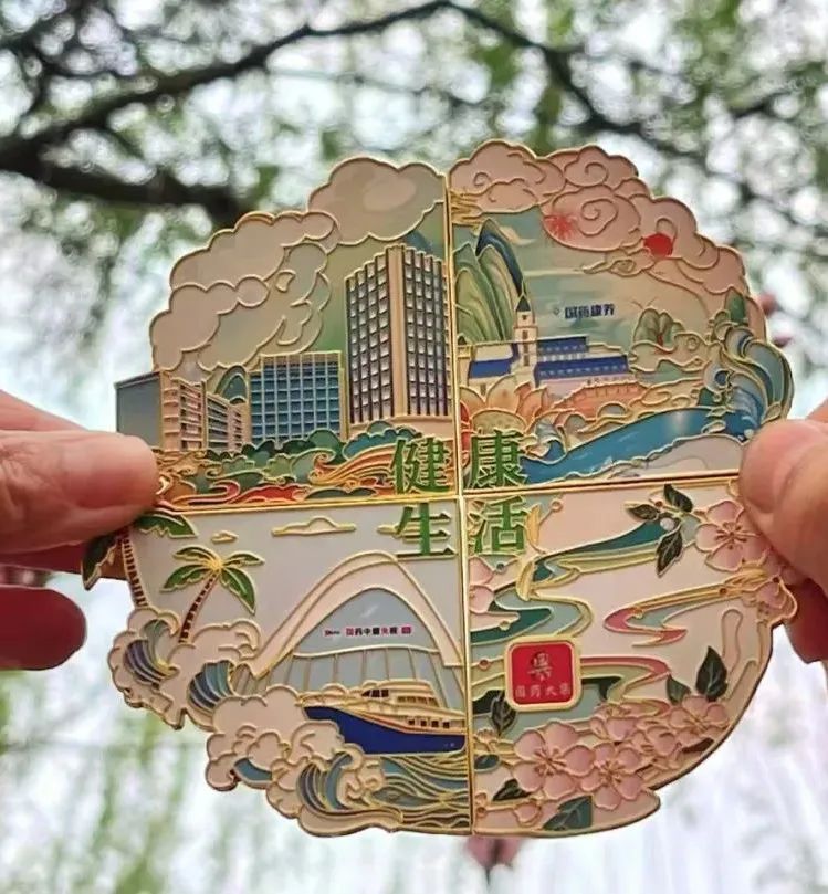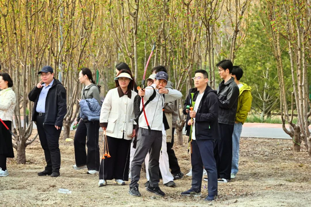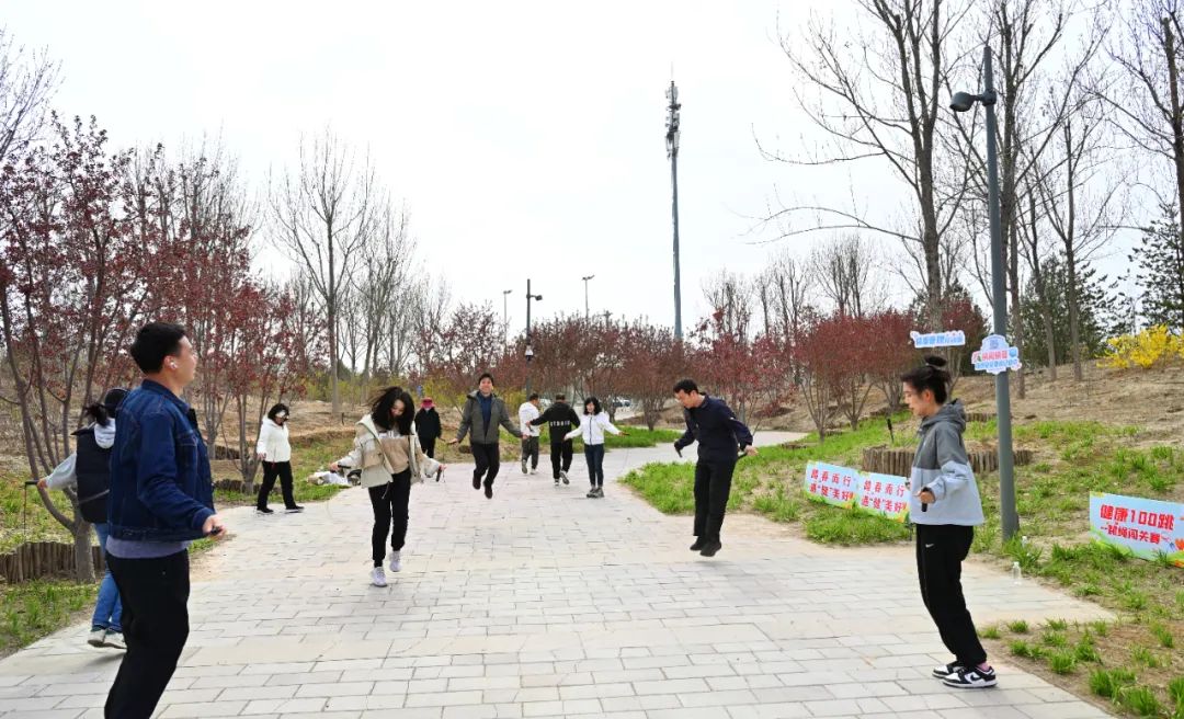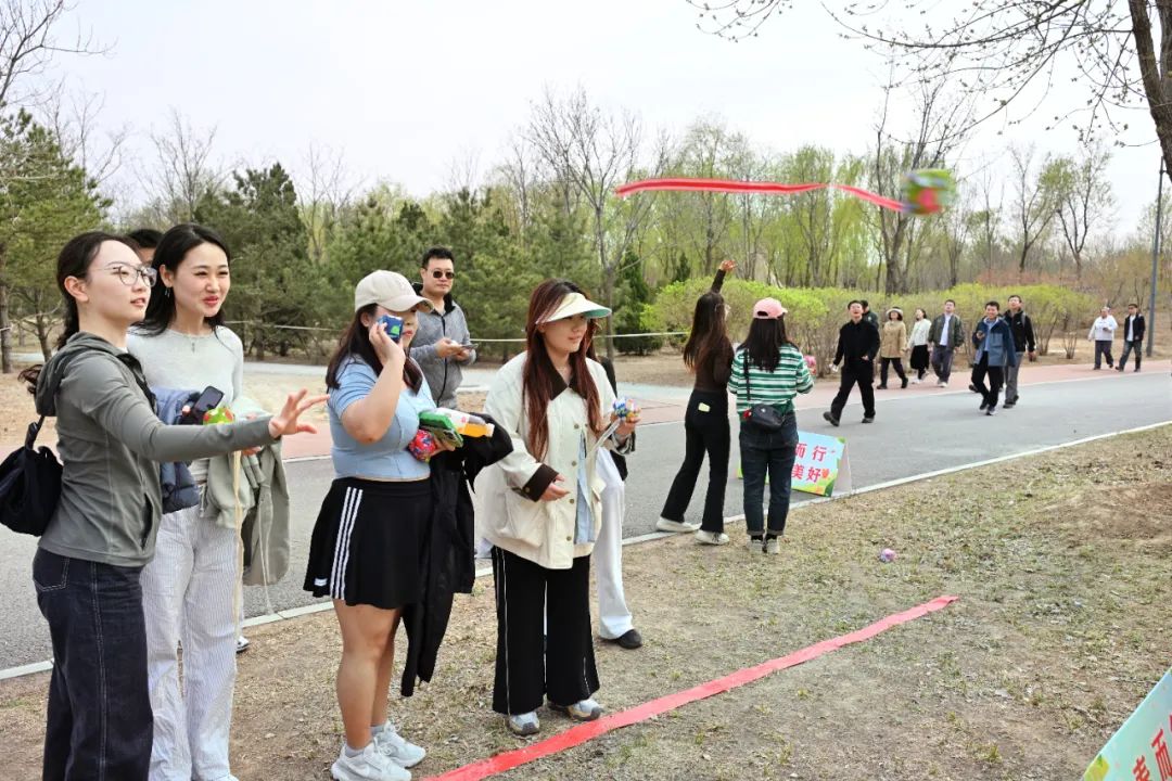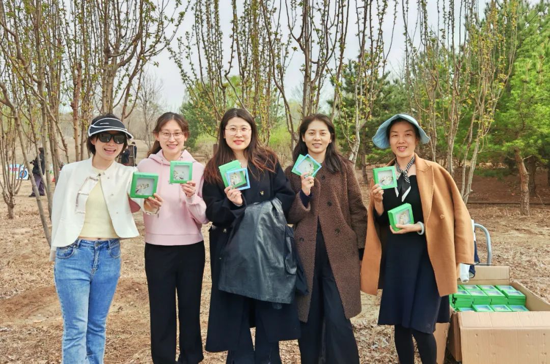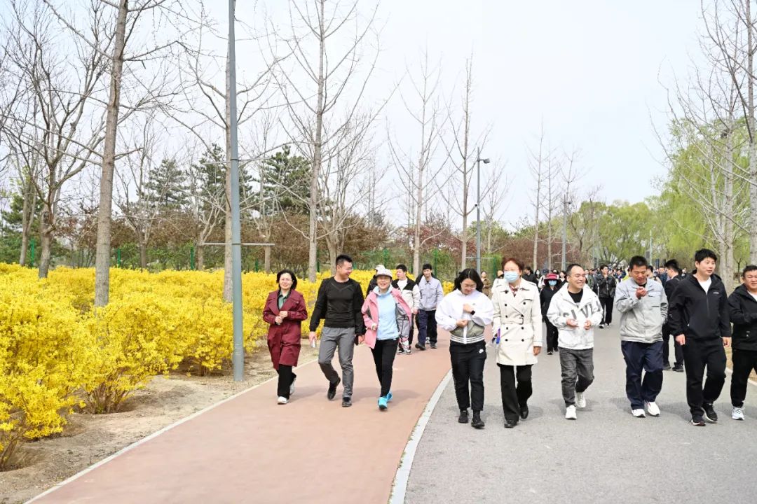 与园内粉的玉兰、紫的丁香、黄的连翘