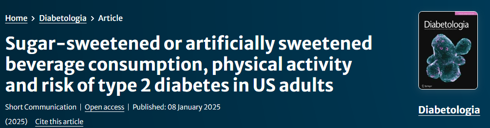 2025年1月,哈佛大学研究人员在《糖尿病学》(Diabetologia)杂志上发表的一项研究发现:喝含糖饮料、人工甜味剂(代糖)饮料或增加糖尿病风险。