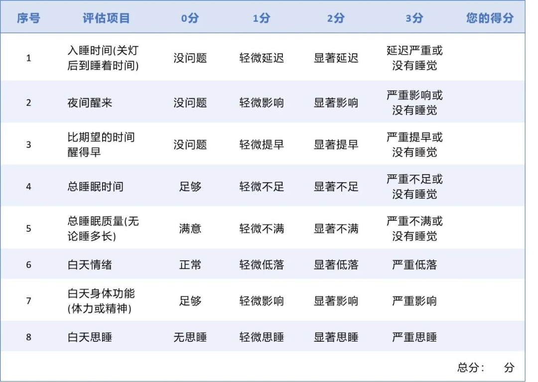 >6分:你的睡眠质量确实需要关注,睡眠问题已经对你的生活造成了一定的影响,建议咨询医生或睡眠专家,寻求专业的帮助。