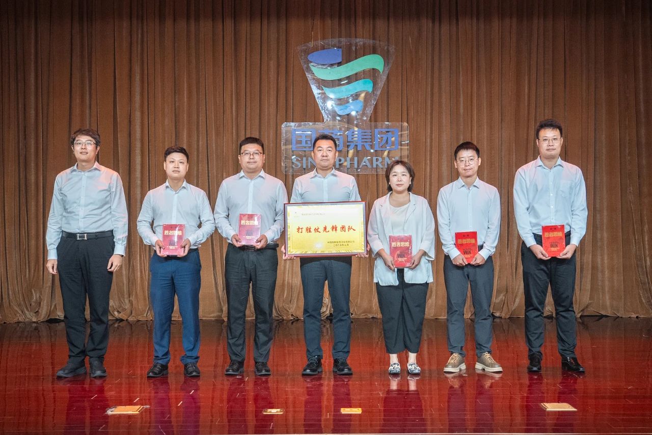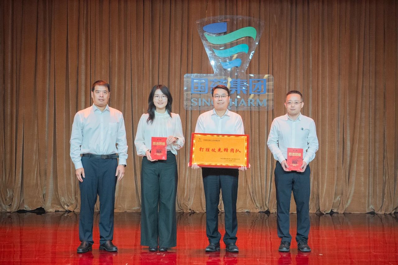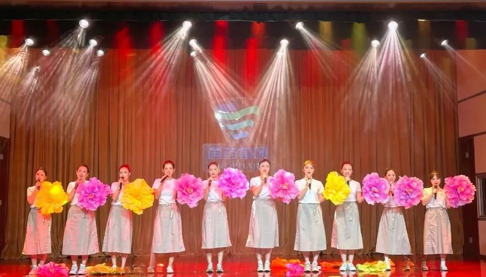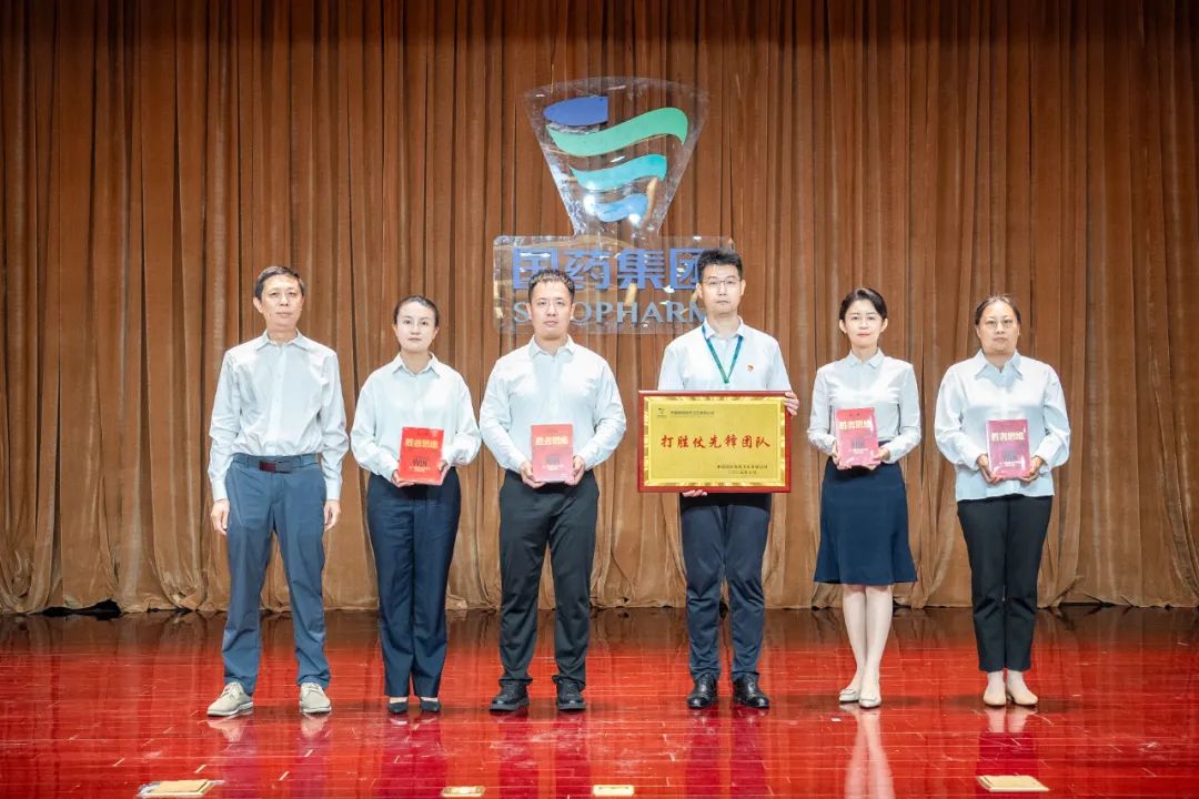 在热烈的掌声中,4个打胜仗先锋团队登台受牌,他们在项目现场日夜奔波,在海外拓展中披荆斩棘,在转型攻坚中奋勇前行,全场为他们点赞!青年员工自编自演热情洋溢的歌舞节目《花开中国》《大展宏图》,唱出先锋团队自信奉献的美好心声,传递出国药人奋勇争先的干事创业激情。