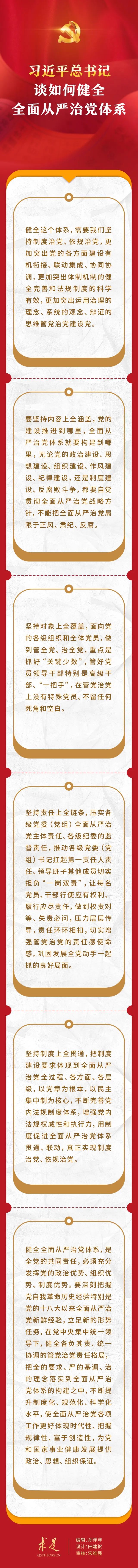 中,总书记强调,“全面从严治党体系应是一个内涵丰富、功能完备、科学规范、运行高效的动态系统”,从党和国家事业发展全局的高度阐明健全全面从严治党体系的目标任务和实践要求。