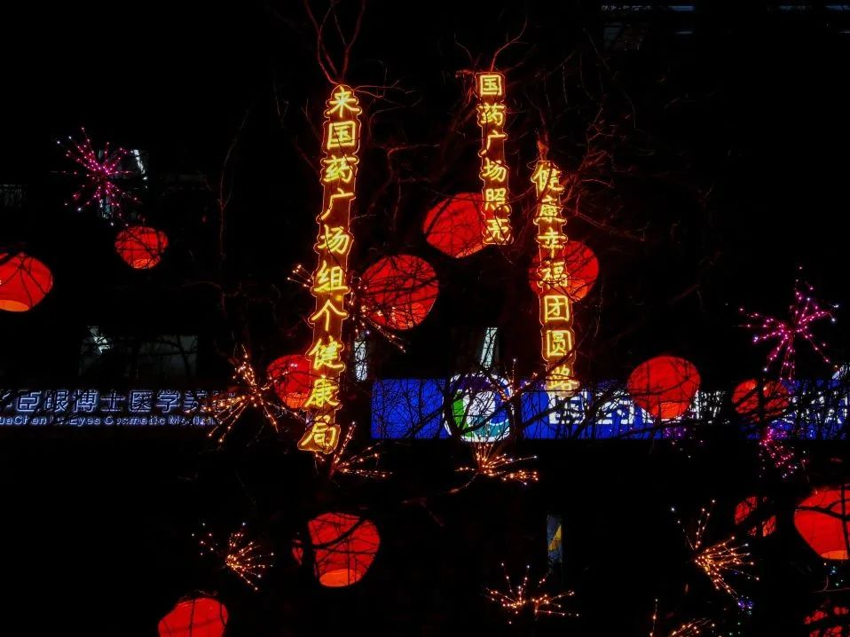 闹非凡的广场上熙熙攘攘,麦穗灯、蝴蝶灯、网红宫灯、郁金香灯……天上圆月明,国药千灯会,上千盏精美别致的灯笼里闪烁出火红的希望,洋溢着新春的祝福。人们呼朋唤友从四面八方聚拢到灯笼下,纷纷举起手机扫码竞猜灯谜,不时传出欢呼雀跃声。棉花糖、糖葫芦是孩子们心头爱。嘴中含着糖,风里飘着香,他们在灯火中追逐嬉闹,个个笑靥如花。