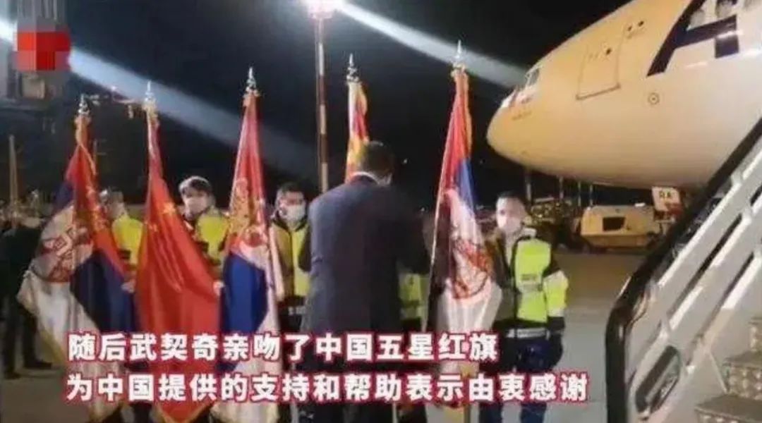 2020年3月21日,悬挂中塞两国国旗的飞机到达贝尔格莱德,搭载了国药集团国药国际筹备的16吨中国捐赠的医疗防疫物资和医疗器械。武契奇在机场致辞时说:“这份恩情塞尔维亚人民永远不能忘记,中国是我们的老朋友,我们的友谊可以世世代代延续下去”。随后,武契奇总统在五星红旗上献上了深情一吻。