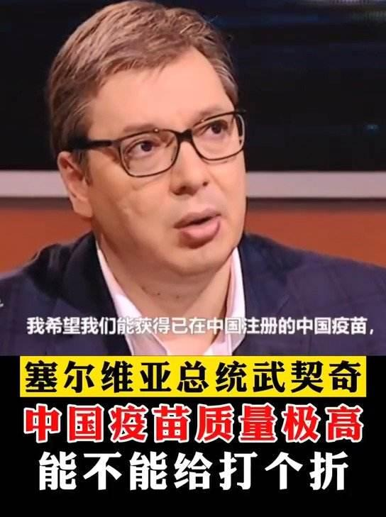 2021年1月16日,第一批国药集团中国生物新冠疫苗运抵塞尔维亚,塞尔维亚总统武契奇亲自接机。1月24日,武契奇总统接受塞第一电视台采访,表示:“中国疫苗的质量是所有疫苗中最好的”“几个月前,直接给中国领导人写信,请求他给疫苗打个折 ”。
