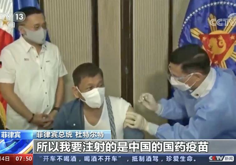 2021年5月3日,菲律宾总统杜特尔特接种国药集团中国生物新冠疫苗后现场表达:“我感觉很好,我期待注射国药疫苗已经很久了,我的医生花了很长的时间评估,医生选择使用国药疫苗,所以我要注射的是中国的国药疫苗”。