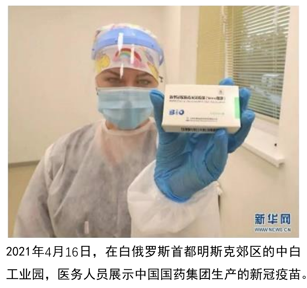 根据中白两国领导人在通话中达成的共识,2021年2月19日,中国政府援助白俄罗斯的国药集团中国生物新冠疫苗运抵明斯克。白俄罗斯卫生部长皮涅维奇对中国政府向白俄罗斯提供宝贵的国药新冠疫苗表示感谢。表示此举再次证明了白中全面战略伙伴关系经得住患难考验,两国友好合作历久弥坚,白俄罗斯人民将永远铭记中方的友好举动。