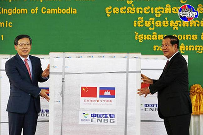 2021年11月17日,在迎接中国援柬第七批国药集团中国生物新冠疫苗仪式上,柬埔寨首相洪森表示,中国陆续提供的援助和商采疫苗,帮助柬埔寨提前完成了国家第一阶段疫苗接种计划,即为全国6岁以上人群接种新冠疫苗。目前,柬全国各领域正逐步恢复开放,有力促进了经济复苏。柬埔寨国家疫苗接种计划的成功实施与中国提供的国药新冠疫苗密不可分,中国国药疫苗已成为柬维护公共卫生安全、拯救人民生命的关键,始终在柬困难时期提供及时、无条件的支持和帮助。