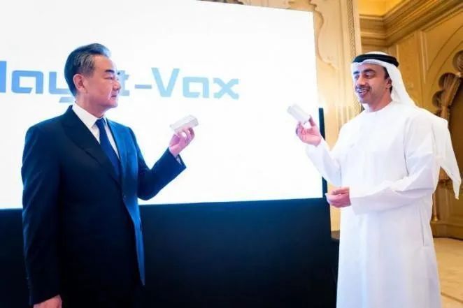 2021年3月28日,中国与阿联酋合作新冠疫苗原液灌装生产线项目启动仪式,在中国和阿联酋同步举行。中国国务委员兼外交部长王毅,阿联酋内阁部长兼外交与国际合作部长谢赫•阿卜杜拉•本•扎耶德•阿勒纳哈扬在阿联酋阿布扎比仪式现场,启动并连线国药集团中国生物与G42集团合作新冠疫苗原液灌装生产车间,共同见证阿联酋与阿拉伯地区首批新冠灭活疫苗正式分装下线,国药集团董事长刘敬桢视频出席仪式并致辞。